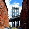 En el corazón del barrio de DUMBO, en Brooklyn, se abre esta vista perfecta donde el Puente de Manhattan enmarca al Empire State Building como si fuera el telón de fondo de una película. En Avenida de Acero y Nostalgia, el contraste entre el acero azul del puente, los ladrillos rojos de las fachadas y el amarillo del taxi crea una composición que respira ritmo urbano y energía neoyorquina.