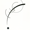 Free Curve to the Point – Accompanying Sound of Geometric Curves (1925) es una obra que muestra la fascinación de Kandinsky por la pureza de la línea y su capacidad de expresar movimiento y emoción sin palabras. Aquí, un solo trazo curvo se convierte en el protagonista absoluto, acompañado de arcos y un punto que parecen vibrar en silencio, como una melodía suspendida.
