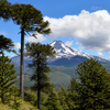 En la cordillera de La Araucanía, las araucarias milenarias se alzan como testigos del tiempo frente al volcán Lonquimay. Esta imagen captura la fuerza de la naturaleza en equilibrio: la calma de los bosques verdes, la pureza de la nieve en la cumbre y el cielo azul que parece infinito.