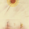 Strahlen (1929) es una obra que condensa la claridad y la serenidad del arte abstracto. Con apenas unas líneas, Kandinsky construye un universo minimalista en el que el círculo se convierte en un astro radiante y cada trazo transmite calma y precisión. Esta imagen evoca la calidez de la luz que se expande con suavidad, creando un punto de equilibrio que invita a respirar y contemplar.