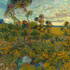 En Sunset at Montmajour (1888), Van Gogh nos lleva a los campos de Arlés al final del día, cuando la luz se vuelve dorada, vibrante y profunda. El sol no se muestra directamente, pero su presencia lo inunda todo: los arbustos, los enebros, las piedras, el cielo que cambia de tono. Cada pincelada transmite una energía vital, una conexión casi espiritual con el paisaje.